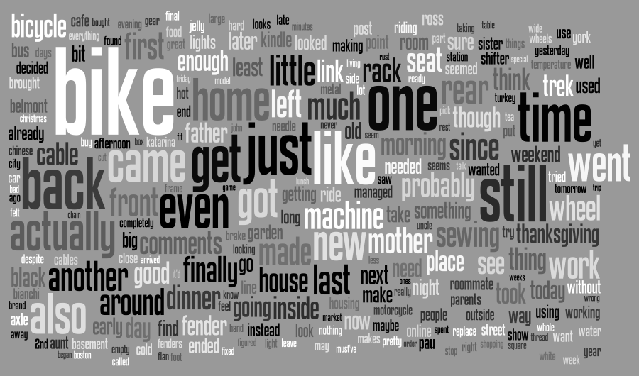 finally, since it's the last day of november, here's a wordle diagram for this month. most popular word? it's "bike"!