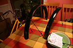 my fenders finally came in the late afternoon. i was taken aback at how wide they were (60mm), but it may look different once i get them installed. they're made from a bendy plastic material that make them feel cheap, but i imagine they're pretty light because of that. i hope they'll fit on my trek 800 and won't look too ugly.