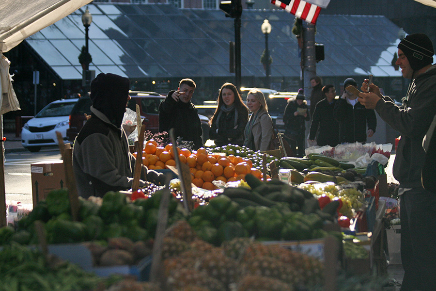when i'm on the bicycle, i never seen to take the same route twice when i cut across boston. i know the city fairly well so it's not like i'm getting lost. but with a bicycle, no road is off limits. i found myself traveling down one way street, made possible by the fact that car traffic in downtown crossing and the financial district is pretty light on the weekends. i got to haymarket, parked in my usual spot right at the end of the jewish holocaust memorial, and did my shopping.