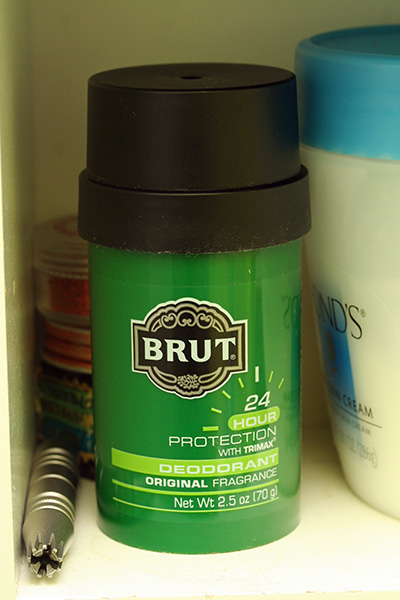 i worked this morning then left in the early afternoon to go see the movie. coming back, i bicycled to the local walgreens to buy a stick of brut deodorant ($1.64). when i was younger, i remember my father had some brut cologne. i always thought that was a very masculine scent and wanted to try it out. it smelled just the way i remembered it, with a very strong alcohol base.