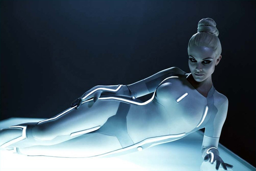 apart from the awful story, once we enter tron world, it's a feast for the eyes. everything is glass accentuated by shiny strips of light. this world is vast and cold and clean. everyone is beautiful and wear sexy skin-tight outfits. there is always techno music in the background always. it's like being in a trendy latex fetish club (not from personal experience, just from what i see on tv). i rather live in 3D tron world than 3D avatar world (that other 3D movie i saw last year). that whole first sequence when sam flynn (the protagonist and son of kevin flynn) is sucked into the tron world and then processed for disc fighting, i was on the edge of my seat. not because of the suspense, but because everything on screen was so beautiful.