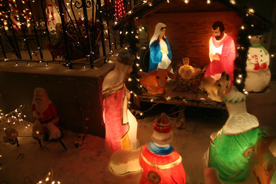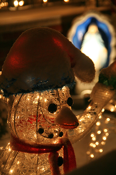 in the evening i took my roommate to go see some somerville christmas lights. history has a funny way of repeating itself, as i did the same thing last december, with another roommate on his last night before departure, bringing him to see some holiday displays as well.