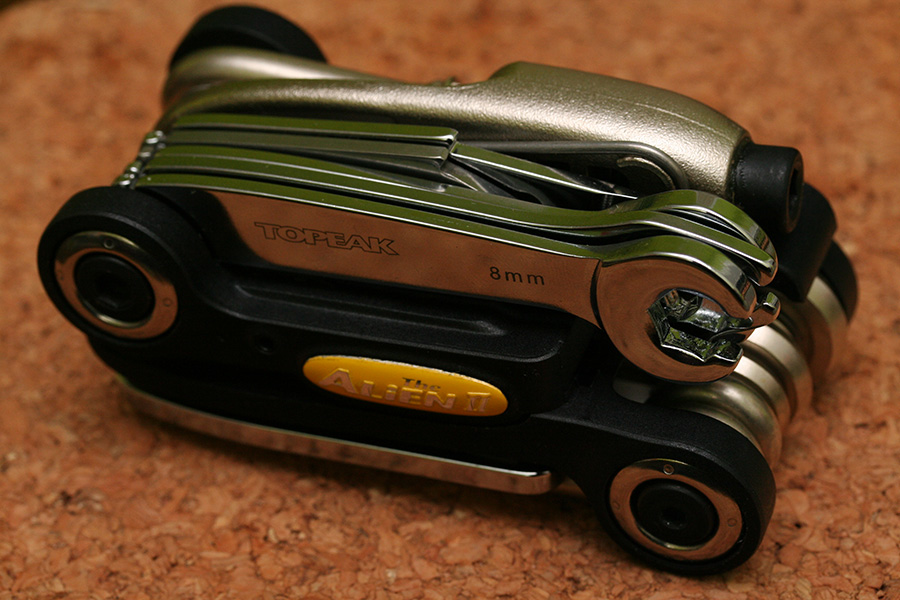 i got a surprise holiday gift today: an alien II bike tool from frances and fredrik in norway. i wonder if they took a peek at my amazon wish list? because this was exactly what i wanted. i played with it all night, folding and unfolding tools, going into the kitchen and testing it out on the ross bike.