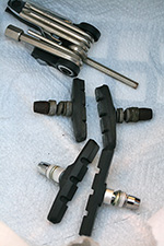 does anybody work on christmas eve? i wasn't expecting to hear from the client today. i was looking forward to a nice slow day doing my own thing. after some leftover mexican chicken soup for lunch, i got dressed and took my trek 800 out of the basement to install some new brake pads. the preexisting pads still work but have uneven wear damage. since i have new ones anyway (XLC brand), might as well put them on.