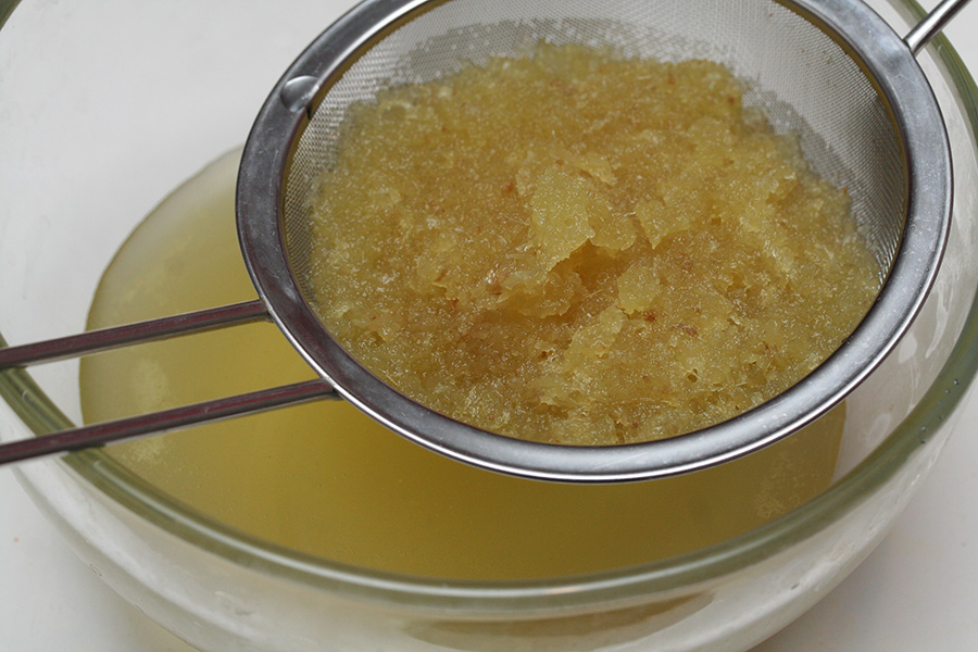 later i drained everything through a fine mesh strainer. even after an hour the syrup is still warm, and the instruction said to cool it to about room temperature, which i tried with a cold water bath. i got the temperature to about the 80's and just couldn't wait anymore and decided to go on to the next step. into a 2 liter soda bottle through a funnel went in all the ingredients combined. i used boiled water from my electric kettle; even after 2 hours it was still hot, so i cooled it down with half a cup of hot water mixed with half a cup of cold tap water. as for my yeast, i noticed the jar said they expired in 2009. if i don't get any carbonation, bad yeast would be to blame.