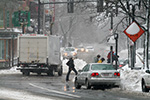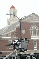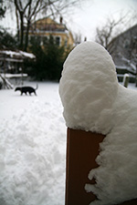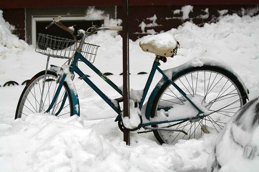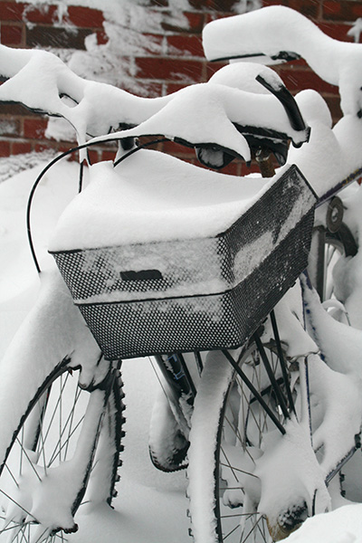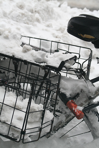 i kept my eyes open for bicycles, especially those with front and rear baskets. winter is a dangerous time for bikes because they're liable to get buried in the snow and then mangled by snowplows. it was a smart move yesterday to relocate my bike into the basement; where i normally park it is now a huge mound of snow.