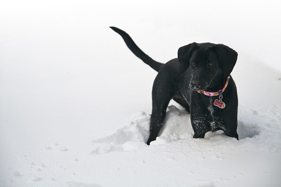for a short-haired dog not suited for winter activities, hailey enjoys playing in the snow. so much so that she'll whine to be let out. she loves to chase snow, from the stuff that falls from the sky, to the kind she kicks up into the air herself. she doesn't even know when she's overdoing it, even when she's shivering. once back inside the house (after much coaxing), her stomach is all freezing cold.