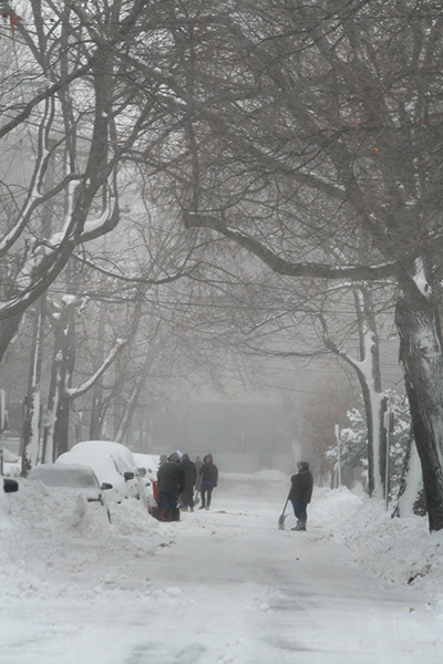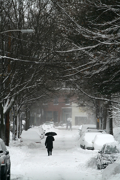 it's just been gathering dust). it finally stopped snowing by that point. along the way, i saw many people digging their cars out from the snow. i never saw the sun, but things were brightening up and i caught glimpses of the blue sky behind the clouds.