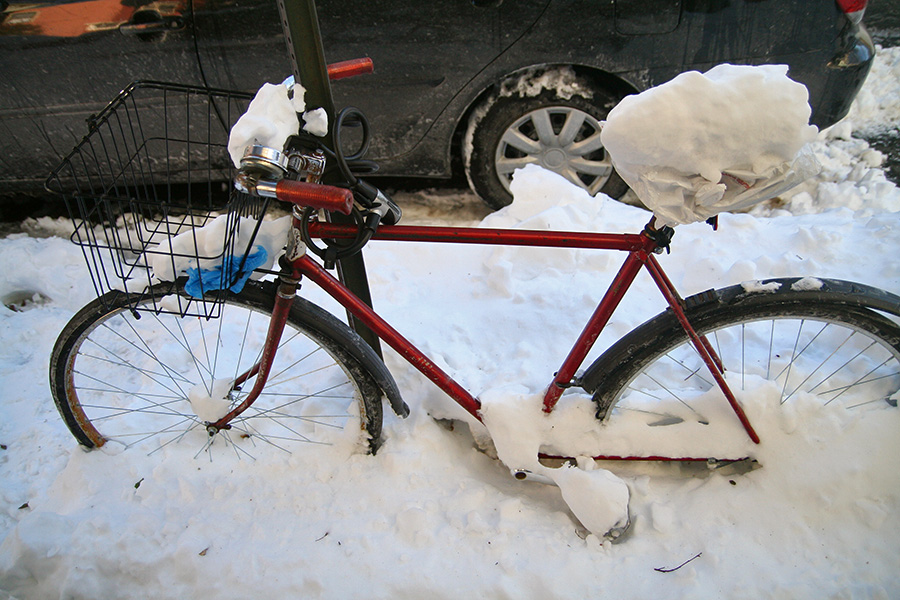 i needed to go to the post office to mail off the latest norwegian-bound package for frances. i was going to do it yesterday but the stormy aftermath made it difficult. i thought about taking the bike, but the roads are still a slushy mess, and on the nicer streets the bike lanes are hidden in the snow banks. i decided to walk down to the post office instead, the safer option. fortunately the box wasn't very heavy.