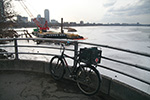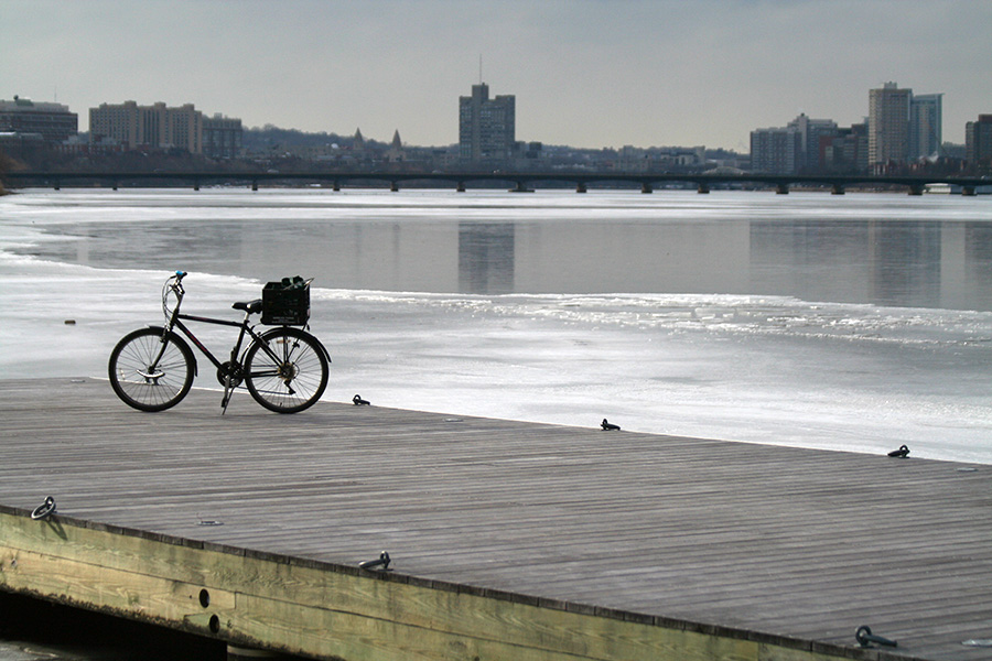 i returned home via the charles river bike trail; a longer ride but i wouldn't have to worry about car traffic. riding up and over the sky walk next to the longfellow bridge, i stopped to take some photos of the ice floes in the river (i noticed them when i rode over the longfellow coming into boston). there was a girl (on a bike as well) taking photos as well and a japanese man stopped to admire the view (surprisingly, he did not have a camera).