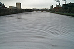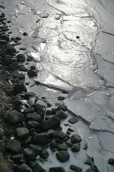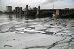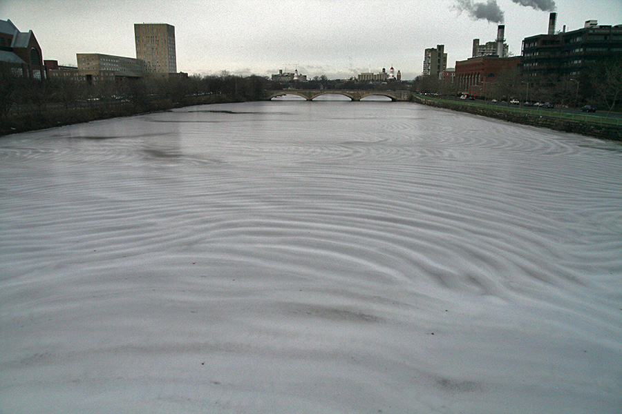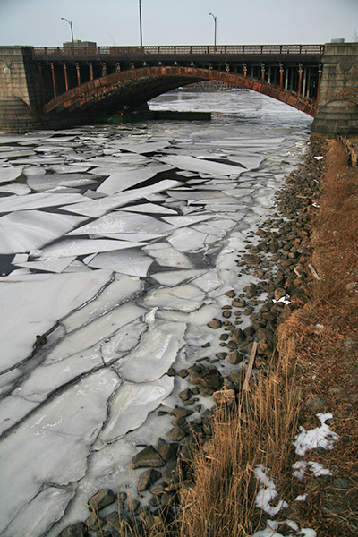 crossing into cambridge over the aptly named cambridge street bridge, i noticed strange frozen ripple patterns in the river. solid state water never fails to amaze me in all its infinite shapes and varieties.