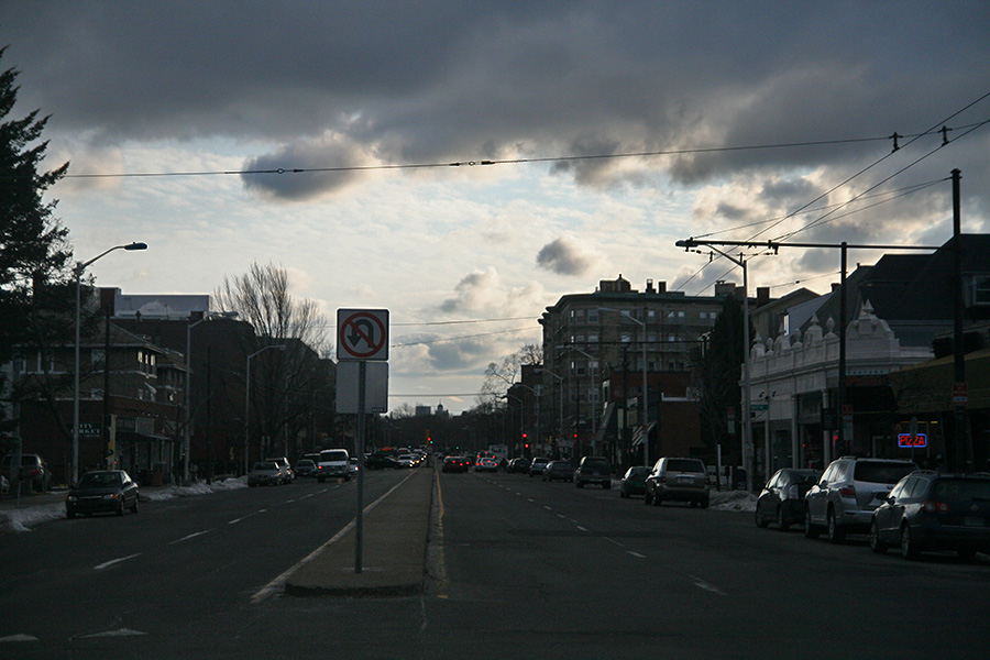 on my way home, it finally started to snow. just a few flakes, but the sky was darkening ominously. i stored the bicycle in the basement just in case, although the weather report said we'd probably only get a dusting at most (more snow to come saturday, but only a few inches).