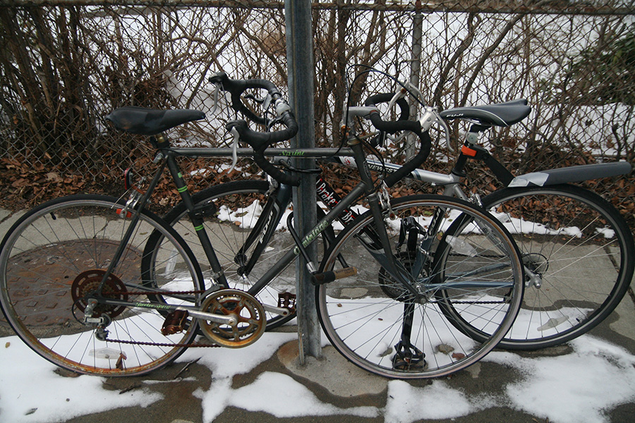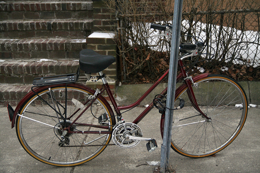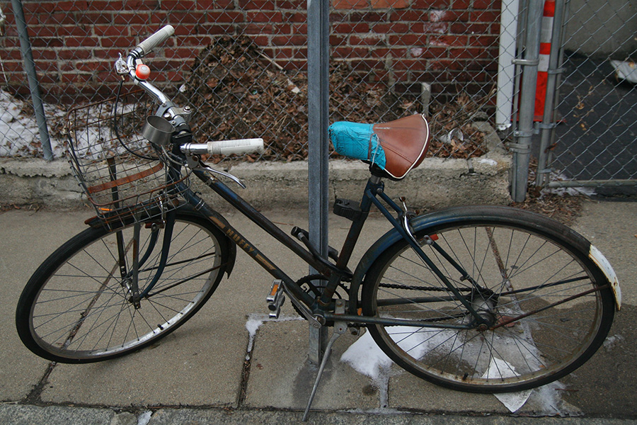 coming back, i took some neighborhood bike photos. i especially life the huffy cruiser with a cup holder. most of these bikes will be buried in snow this time tomorrow! i spared my own bike from a similar fate by storing it temporarily in the basement.