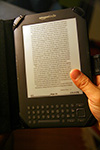 which remains tiny. i still can't get over e-ink technology; the screen actually looks better the more light that shines on it. that's also it's weakness though, because i keep wishing the screen would glow so i could read in the dark. but a glowing screen would use too much power, and battery conservation is another hallmark of the kindle. i think i read somewhere that it can go a whole month's usage without recharging. besides, books are traditionally read with external illumination at nights, so it's not a stretch to expect the same of the kindle. i like that i don't have to flip pages anymore; it's great for reading on my side, because i don't have to fold the book in order to accommodate my awkward reading position.