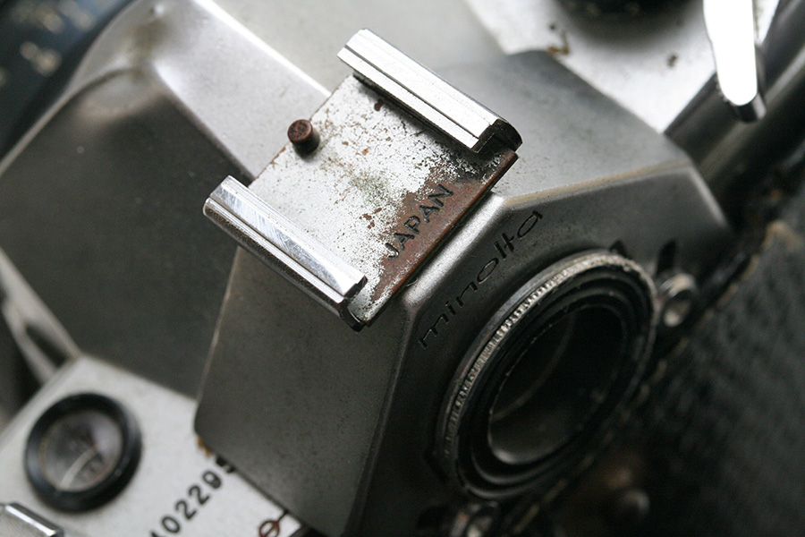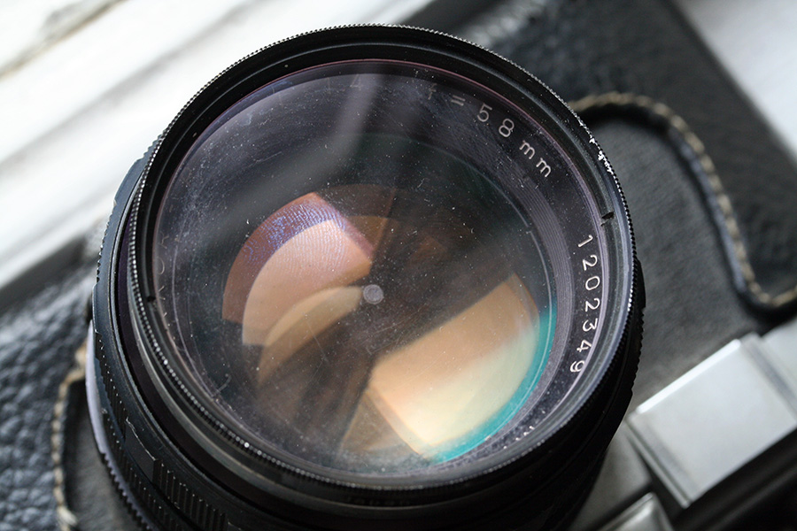 while cleaning up the water damage in the basement, my father found some more of his old cameras, a minolta SR-3 he purchased in the early 60's (his first camera) and a nikon FG he bought here in boston in the 80's. the minolta sported a particularly impressive lens: an auto rokkor-PF f/1.4 58mm. unfortunately a half century of neglect has left some unremovable fingerprints and some mold inside the lens. any lubricated inner workings have dried up as well since it's difficult to turn the ring on the manual focus. still, if i can get my hands on a minolta-canon lens adapter, i might be able to play with the lens at some future point.