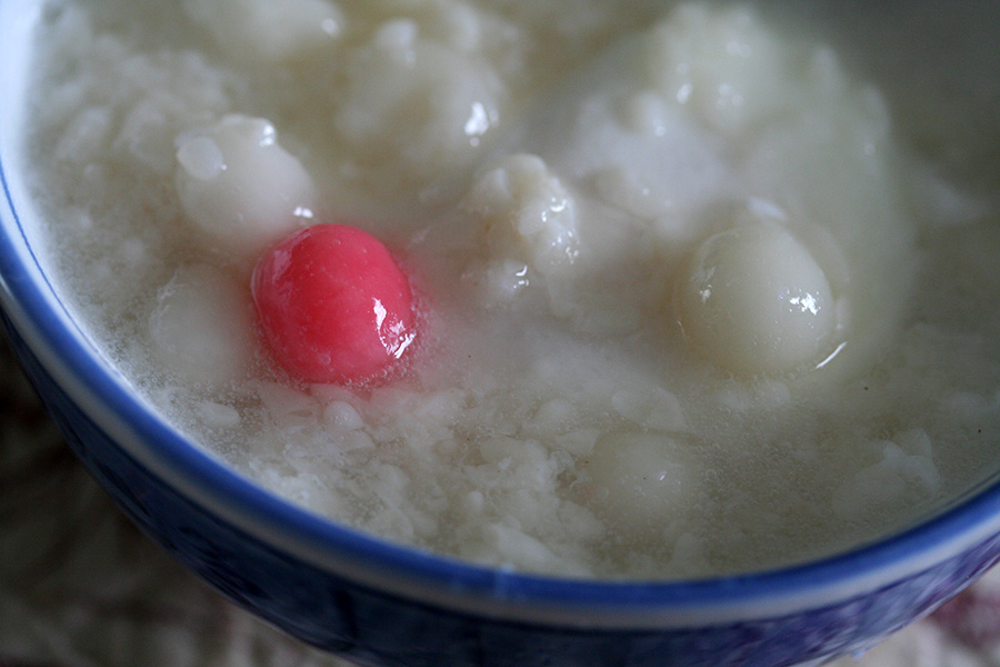 when i first got to belmont i had some leftover potato bake with cheese my sister brought back from her super bowl party. my mother also made me a bowl of fermented rice porridge with gluten balls and an egg.