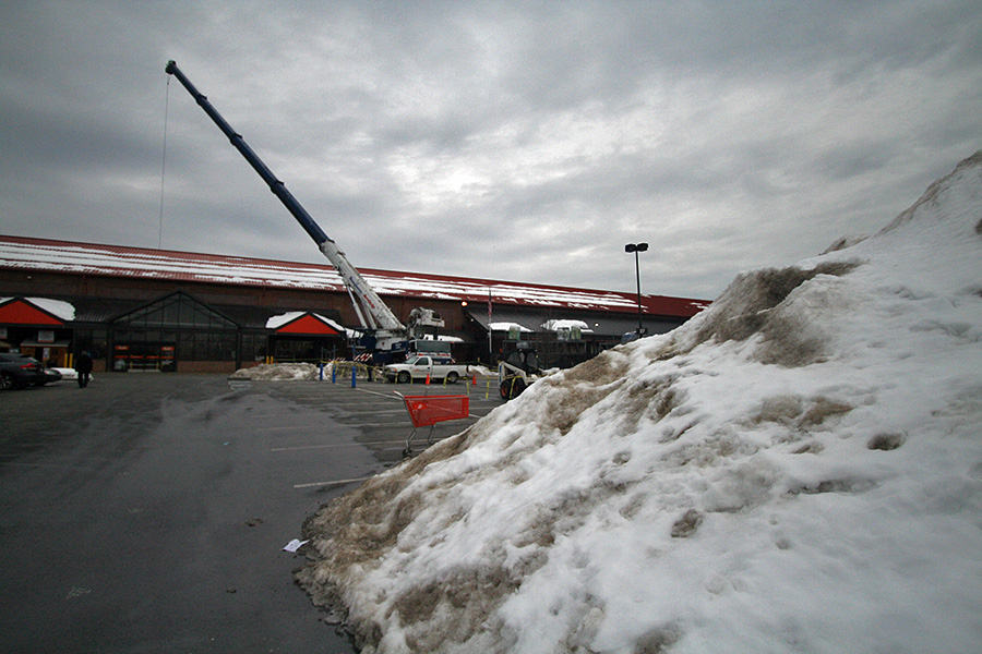 after my father realized what they were, he sent my sister and i out on a mission to look for some ice melt at home depot (so we could make our own ice melt socks). i was there just yesterday and didn't see anything but i wasn't really paying attention. when we got there, we couldn't find any snow removal equipment, not even shovels or ice scrapers. at most there a few snowblowers. my sister asked one of the employees who told us they were all sold out. of course. we abandoned our empty shopping cart in one of the aisles and left the store. we stopped at the nearby target just to see what they had but they too had empty shelves.