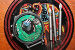 the owner must realize this, and feeling guilty, one time buffed some scratches off the glass face free of charge. anyway, just realized tonight that it's actually pretty easy to open up the watch and change the battery myself! a 364 watch battery costs only 60¢ versus $12 to get it replaced in a store. the thing i never realized (but revealed to me one time by the watch repair guy) is the watch actually takes two batteries: one to run the watch itself, the other to power the light.