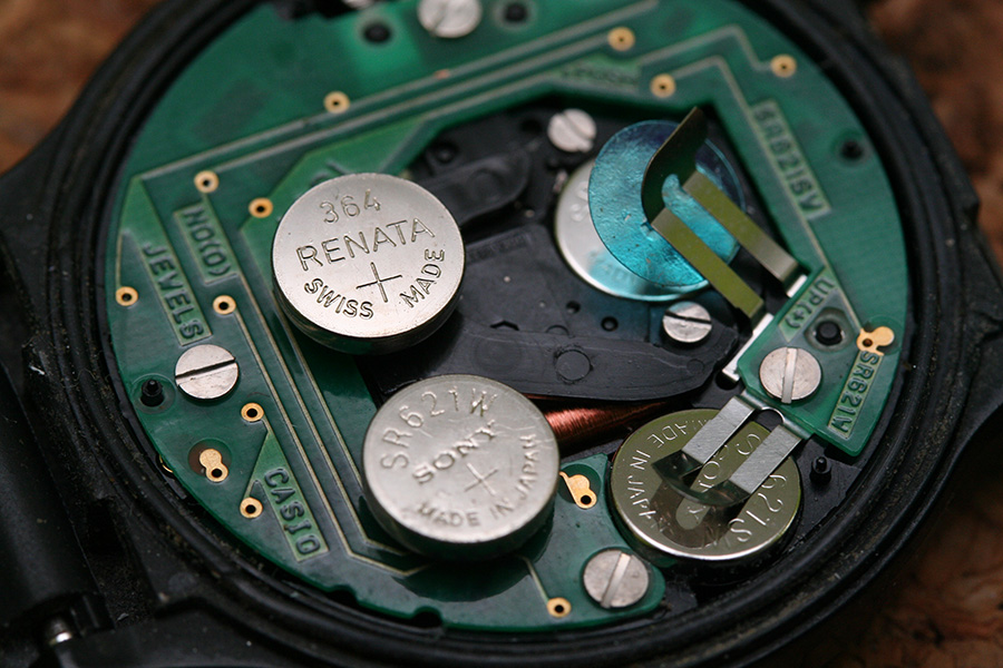 the watch batteries i ordered last wednesday arrived in the mail today. the batteries i got were sony SR621SW/364. but i noticed the watch circuit board makes references to 2 different batteries: SR621SW and SR621W. i wonder what's the difference? in any case, my watch is working now, although the illuminator light isn't as bright as i remembered it to be (maybe that's because of the batteries).