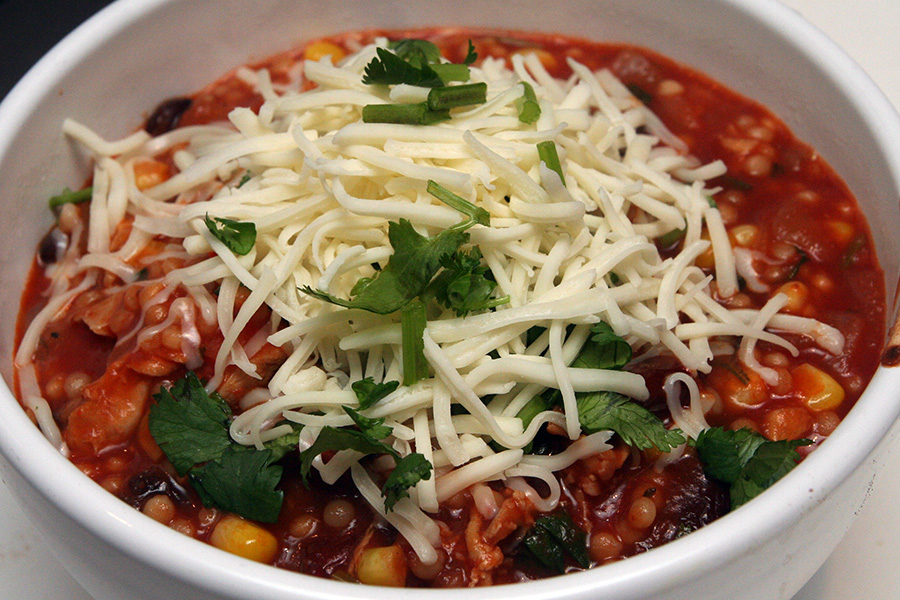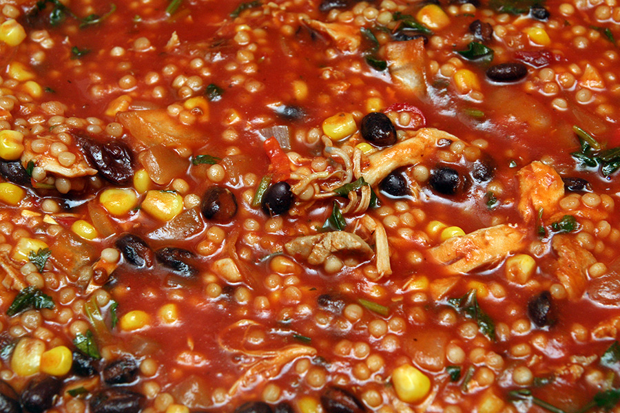 in the evening i made a big pot of spicy mexican chicken soup with israeli pearl couscous. the recipe said to top off the soup with some shredded monterey jack cheese but it ended up becoming a big melted mess. still, a very good dish for cold winter nights. it was so spicy my nose was runny the whole time and i was afraid i'd use up a box of kleenex.