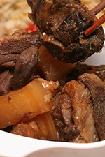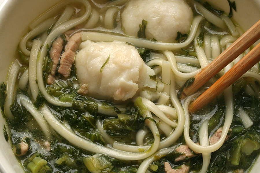 even though i already had a pair of tea eggs for lunch, my mother fixed me a bowl of xue li hong (mustard greens) noodles when i arrived in belmont after coming back from the backyard with the dog (who left a pile of chewed sticks on the lawn). my sister made a blueberry cake with coconuts. it was good, with a lot of crust, and i had two fresh-from-the-oven slices while watching newsradio reruns on the reelz network.