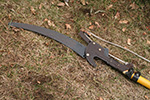this wasn't the first time we pruned a tree, so we had all the necessary equipment: manual pole pruner, electric pole pruner (basically a chainsaw at the end of a long pole), electric chainsaw, pruning saw (not pictures), and a bypass pruner. we also could've used a pair of loppers but couldn't find it. my father scrambled up a ladder with the pruning saw and bypass pruner while i was on the ground directing which branch to cut and clearing the debris once it fell to the ground. soon we worked our way to the power tools, mainly the electric pole pruner. it worked fast, but made messy cuts, so it was better to use the manual version, even though it didn't have as long a reach and required more dexterity to operate.