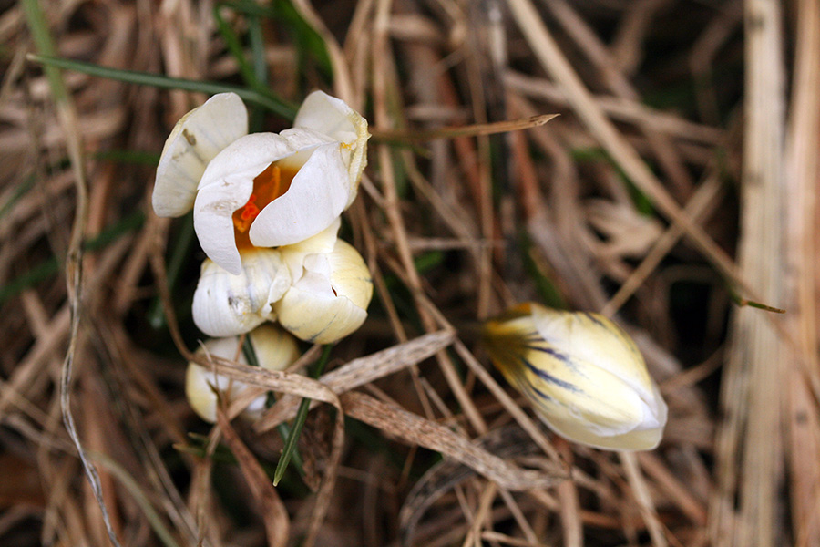 there is no more snow in my parents' backyard. that didn't stop it from snowing though, on this grey and cold day. it was just a flurry and if i wasn't outside, i would've missed it. later in the afternoon the sun came out a few times behind thick clouds.