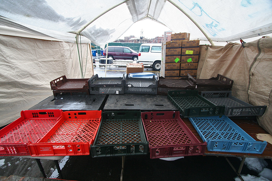originally i was going to bike into boston but the rainy weather changed my plan. after the doctor's appointment i walked down towards city hall to haymarket to pick up a few things: some goat meat, pineapples, scallions, ginger, garlic. i was there early enough that some of the stalls hadn't set up yet.