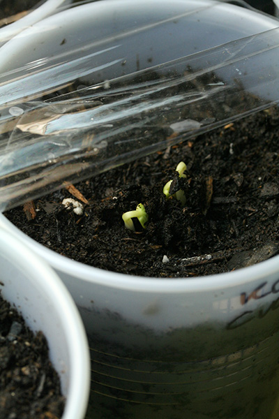 so the good news is the morning glory and basil seeds are viable. at this rate, i may never have to buy those seeds again, but instead resorting to collecting them at the end of the season to grow again for next spring. i'm surprised the morning glories did so well; in the past i'd soak them in warm water overnight to break open the shell and give the seeds a headstart.