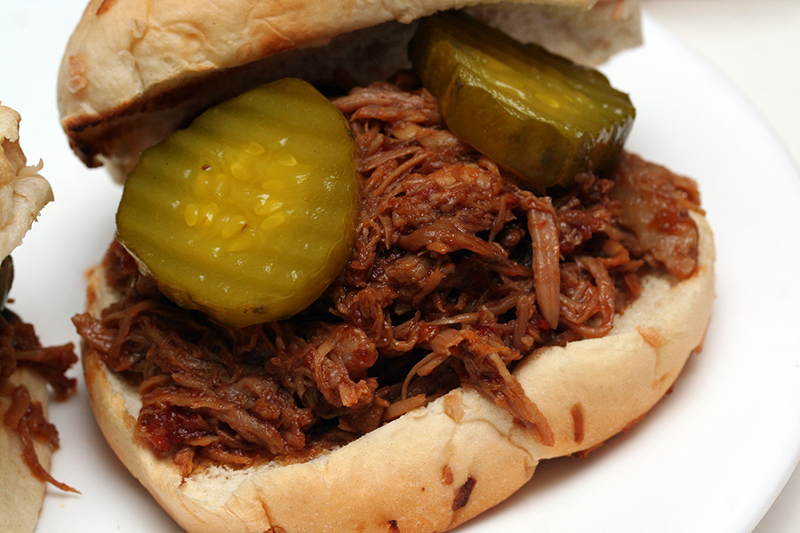 by then victor had come home (8:30). 30 minutes later i finished reducing the sauce and poured it into the crockpot to mix with the pulled pork. i invited victor to sample some of my pulled pork sandwich. he said it was pretty good. i think it came out okay despite the setbacks, but the flavor was completely not what i expected. i wanted a spicy sour pulled pork but this was more spicy sweet.