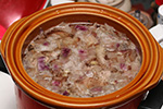 4 lbs. pork butt 1 medium red onion, chopped 4-5 garlic cloves, chopped pinch of salt |