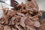 the pork finally finished cooking by 8:00, 6 hours later. i shredded the meat in my largest pyrex bowl with a pair of forks, while pouring out the liquids into another bowl. afterwards i put the unflavored pulled pork back into the crockpot and added the sauce. this was when i realized i didn't have enough. so i immediately began cooking up a 2nd batch of the sauce. this time around, i think i put in a little bit too much molasses but this new sauce was more bitter.
