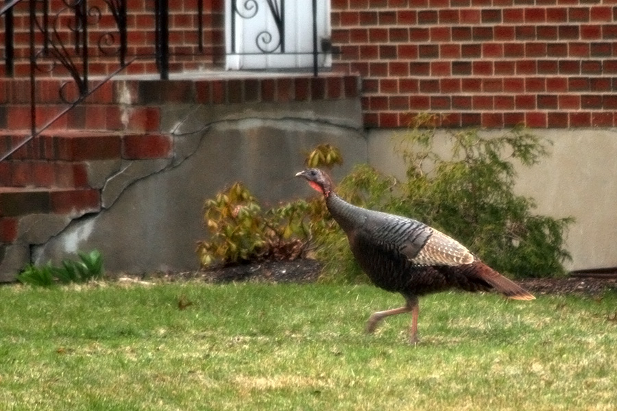 giving me a ride back to cambridge around 6:00, my father spotted a pair of wild turkeys crossing the road in my parents' neighborhood. we've never seen them before,