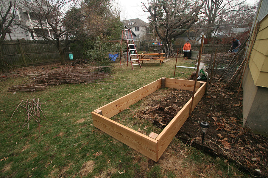 the final raised bed frame was still wobbly when we stood it on its side, but flat on the ground it was pretty solid. we moved it into its potential resting stop, in preparation for 3 more raised beds to be built within the coming weeks. now there's the question of soil; i still need to look around for a cheap supplier.