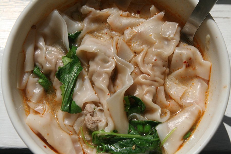 returning home, my father drove the car using just the sideview mirrors since the rearview was blocked by the trio of plastic barrels. i thought it'd be fun to go to the airport and see how fast we'd get surrounded by security over the suspicious cargo. after dropping me off in belmont along with the barrels, he left for work. my mother who was home at the time fixed me some wonton soup for lunch.
