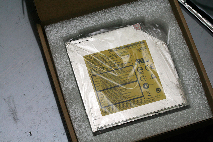 my new used replacement laptop optical drive arrived from shenzhen china. switching out the busted old drive with this new one should've been a simple procedure until i stripped one of the screws holding the old drive to the macbook pro. now i can't remove the drive so will have to ask my father for a solution tomorrow. maybe i can find a nice set of needle-nose pliers, or a dremel tool with a small enough attachment to cut a new notch so i can use a flat-head screwdriver to remove the stripped screw. i'm in no rush, but i feel pretty stupid for stripping the screw, total rookie mistake.