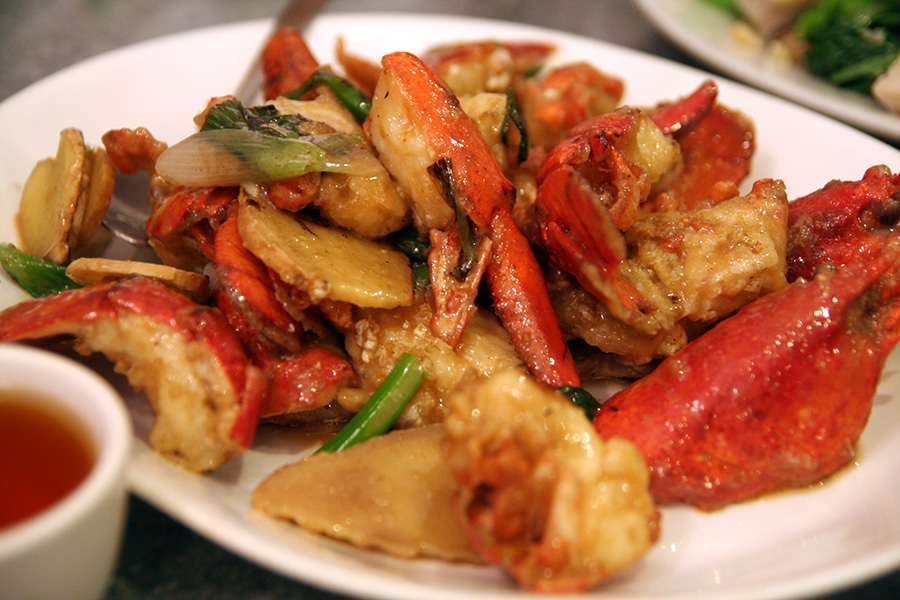 they invited my family out for dinner, and we reconvened back at my parents' place, with me hitching a ride with my sister. we got there first so my sister could finish cleaning up the bathroom and later to feed the dog. when my father came home, we were out in the backyard attaching some cedar wood posts to one of the long planks. finally my aunt and uncle and mother arrived. my aunt confessed she was afraid of dogs, but we assured her hailey was quite different, a very obedient dog. so of course hailey barks at my aunt as soon as she enters the house, doing nothing to help her dog fears. chinatown was our original destination, but we decided to go to victoria seafood restaurant in allston-brighton instead, for their signature twin lobster dish.