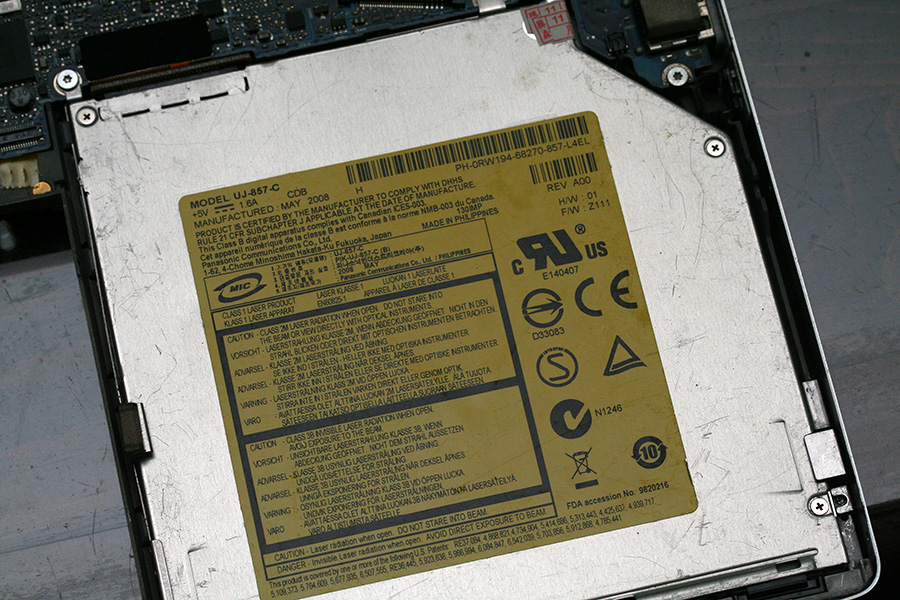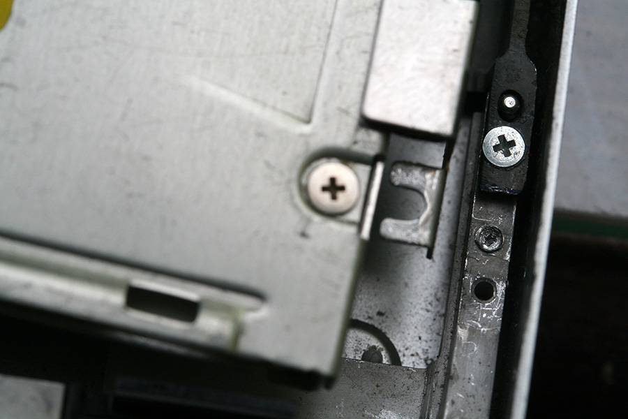when everyone finally left (my little aunt and uncle giving my 2nd aunt and uncle a ride back to cambridge), i dug out my laptop so my father could help me fix it. with the notches on the head completely stripped, there was no way we would be able to unseat the screw. so my father got his dremel tool with a diamond-tipped polishing knob attachment and buffed off the head entirely. finally i was able to remove the old optical drive. the only down side is the shank is still embedded in the hole; however, the optical drive is attached to the computer through 3 other screws, so missing one of them isn't a big deal.