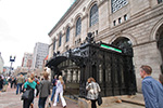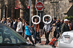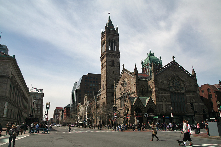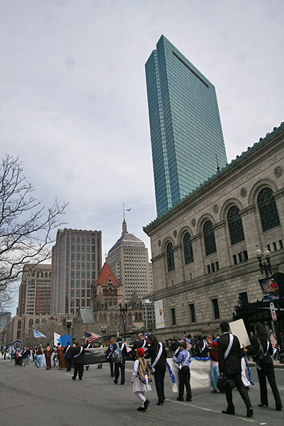 it took about 40 minutes to get from my house in cambridge down to copley square in boston, were i traditionally watch the greek parade. wooden barricades were already prepared on the sidewalks, ready to stop street traffic once the procession began. the weather wasn't bad, warmish, but would cloud over as the day wore on.