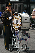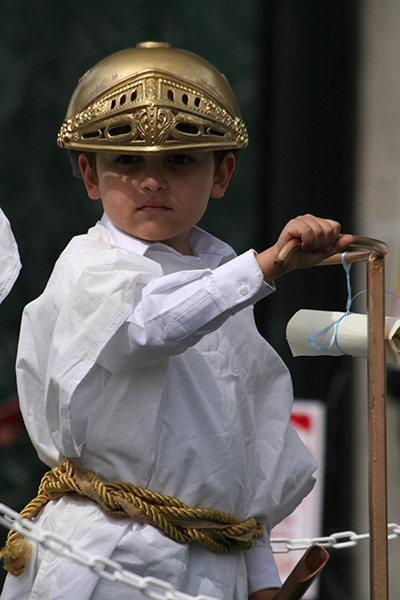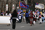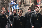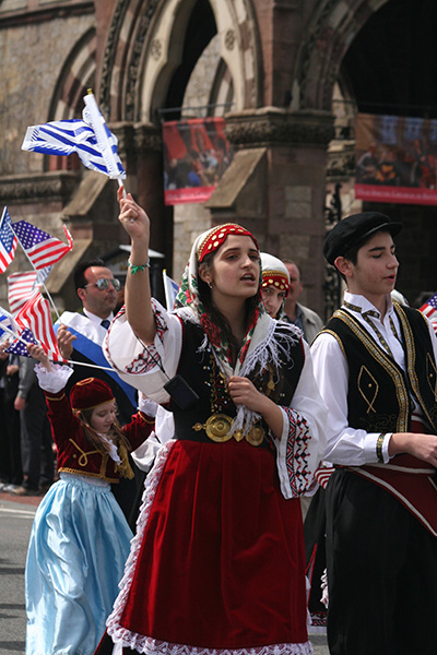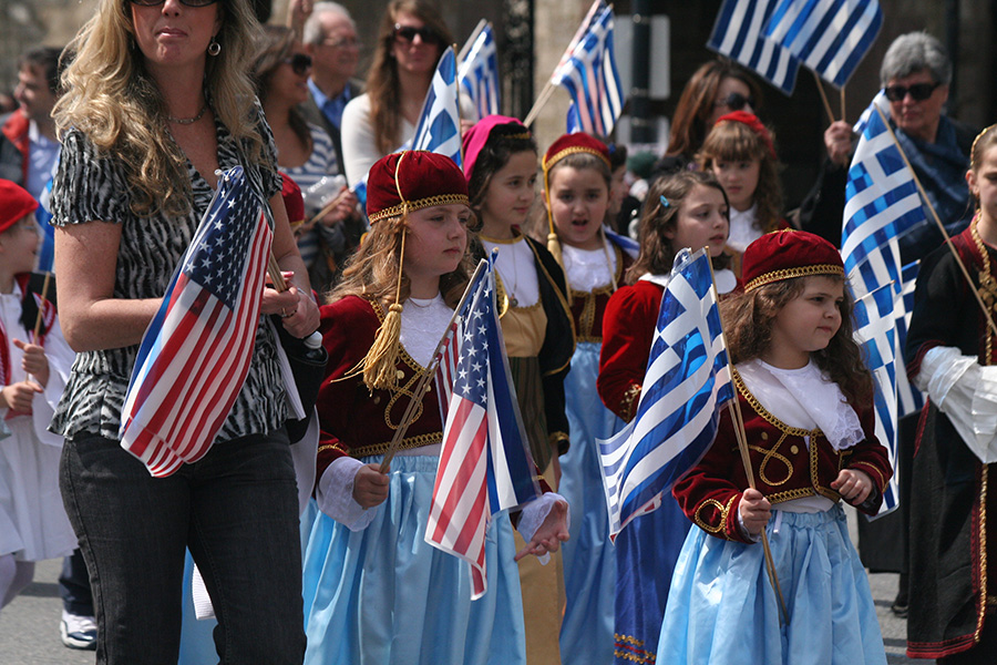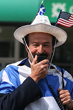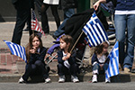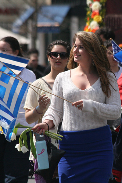 i had 20 minutes to kill, so i just waited for the action to start. i try to pick a strategic spot, one where people won't be tempted to stand in front of me, blocking my field of view. i was hoping to stand next to the guy in the mechanical wheel chair (nobody would dare block a wheel chair guy) but he grew tired of waiting and motored off in search of something more interesting. i was surrounded by a group of older greeks who suddenly descended upon me. it wasn't long before they were in the streets, to the point where they were mingling with the parade marchers.
