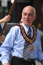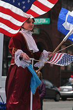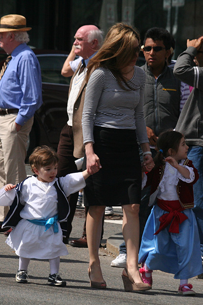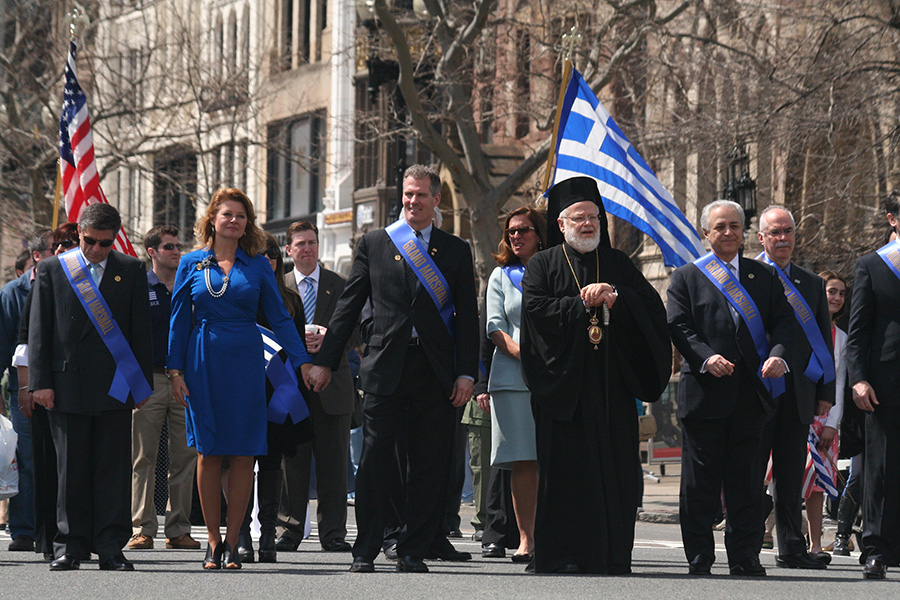 the grand marshall was supposed to be mayor menino but the organizers must've dumped him when they upgraded to senator scott brown and his wife (who may be of greek descent). the mayor was nowhere to be seen.