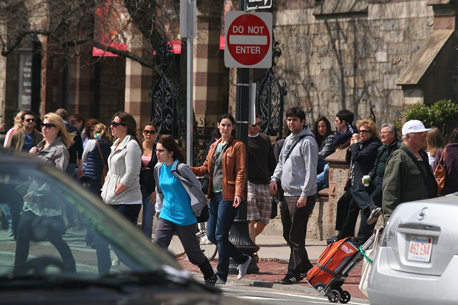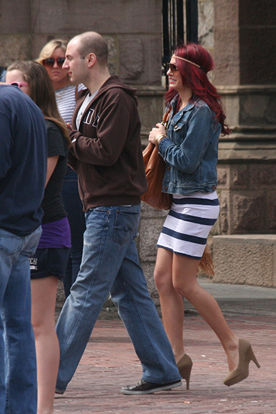 i saw my roommate and his girlfriend arrive at exactly 1:00, right when the parade was about to start. i waved to them but they didn't see me, walking instead to the start of the parade route.