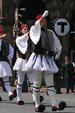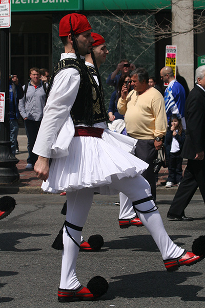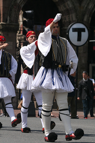 the first time i saw the greek evzone guards i thought they looked ridiculous: skirt, shoes with pom-poms, and calf tassels. since then i've seen enough to be jaded by their outfits.
