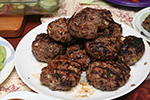 i assisted my father outside with the barbecue, bringing him clean plates while ferrying the cooked foods back inside the house. of the more than 5 lbs of beef, i managed to roll 21 patties, ready to be flame licked to barbecued goodness.