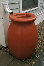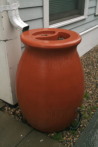 ever since i've began this rain barrel project, i now see them everywhere. the ubiquitous blue plastic barrels is a dead giveaway, but recently i spotted some more elegant terracotta pot-shaped rain barrels at a newly-built condo complex. passing by downspouts pouring out torrents of rain water, i couldn't help feeling sad that here was this free natural resource falling from the sky going to waste. this would've been the perfect day to test out our own rain barrels but they're not finished yet, my father and i are still discussing spigot/outflow options.
