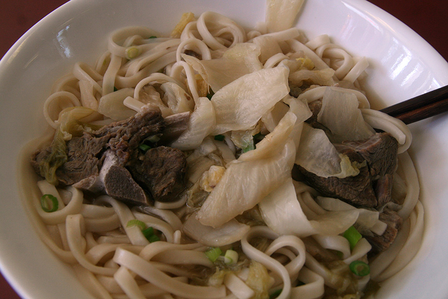 errands meant biking down to the cafe to present my findings to my parents so they can choose the camera to buy for their china trip. my mother was at the doctor's and wouldn't be back until later. my godmother's son alex (huang) stopped by to put away a few unwanted suitcases in the basement. when my mother finally returned to the cafe, she made me a bowl of goat noodle soup with sauerkraut.
