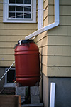 later i moved the rain barrel by the foot of the staircase to the one at the middle of the house. my father said we needed two (on serving as an overflow backup) and the blue one he got for the cafe he didn't need anymore so we could use it in the backyard as well.