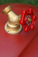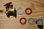 although the first barrel used a 1/2" sillcock, the second and third would have a larger 3/4" version (not sure which is the more standard size, but i know that garden hoses usually are 3/4" diameter). the spigot diameter isn't too important because we don't need the water to come out very fast from this end; not that it would anyway, since water pressure is based on the height of the barrels and none of the barrels will be very high off the ground.