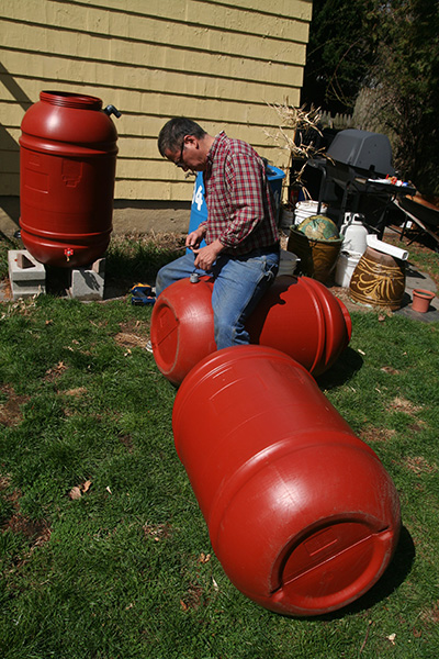 after i had some sauerkraut lamb soup, my father and i finally assembled our rain barrels.