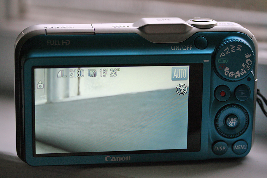 the SX230 features a wide 3" screen. i just assumed it had a 16:9 aspect ratio, but it's actually a little wider than that. what that means is even when shooting 16:9 photos/videos, there is always a black bar on the right of the screen. it's kind of weird and seems like a bad design, but not something noticeable unless you look for it. i set the camera to shoot in 16:9 "widescreen" mode so it was less noticeable than shooting in 4:3 mode (in that case there'd be black bars on both sides of the screen).